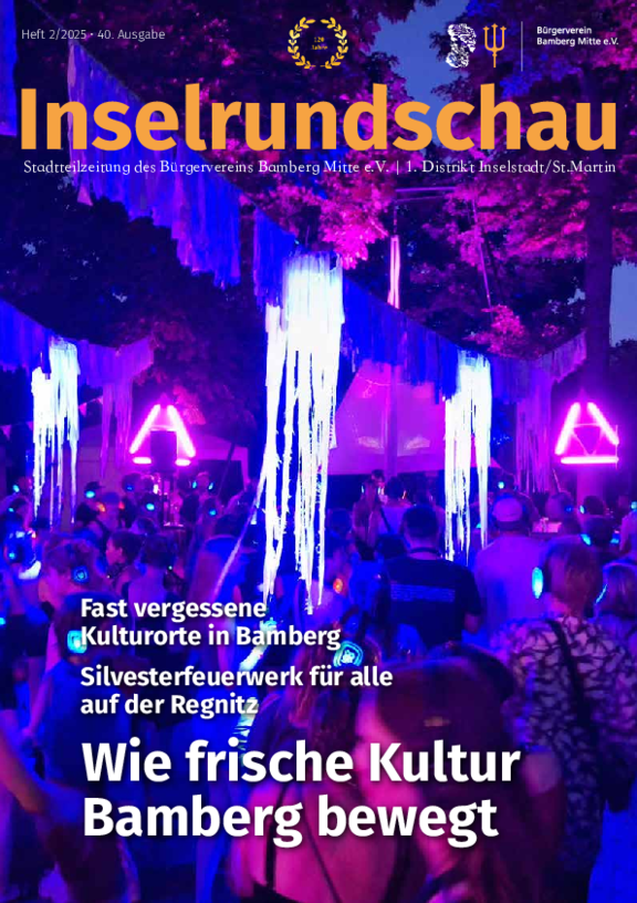 - Außerdem lesen Sie wie immer News aus der Inselstadt und Stadtgesellschaft sowie Nachrichten aus dem Bürgerverein Bamberg Mitte e.V.